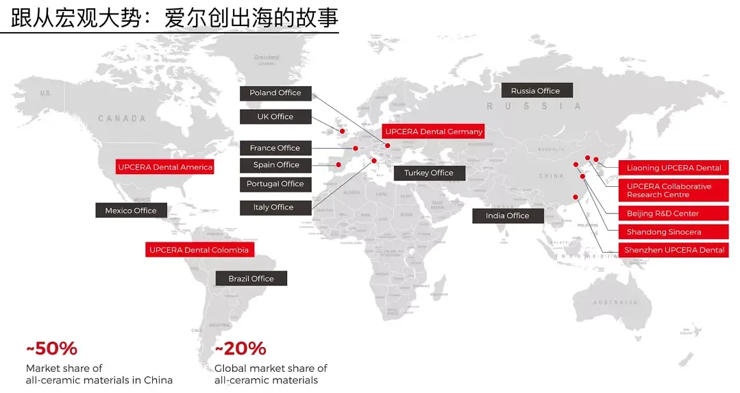 这种产品应用场景的一致性,在汽车、消费电子这些行业很难做到。汽车你在中国能卖,到欧洲可能因为排放、关税、政治因素进不去。但牙科产品不一样,法规相对统一、产品逻辑相通,这让出海的门槛相对可控。